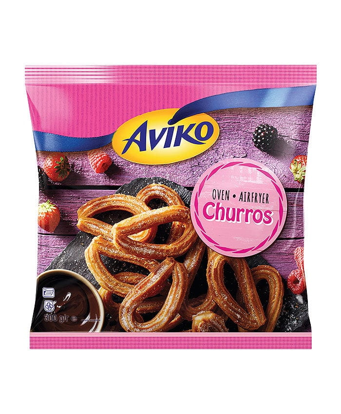 Churros to tradycyjny, "zakręcony" i słodki smakołyk pochodzący z Hiszpanii. Wystarczy je opiec w piekarniku lub frytownicy i są gotowe. Świetnie smakują ze szczyptą cukru pudru, po zanurzeniu w czekoladzie lub ze świeżymi czerwonymi owocami. Są sprzedawane mrożone, więc można wyjąć z opakowania pożądaną porcję, a resztę pozostawić na następny raz.