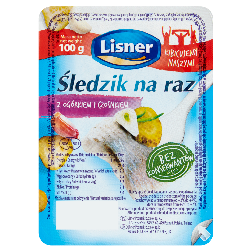 Lisner Śledzik na raz z ogórkiem i czosnkiem 100 g