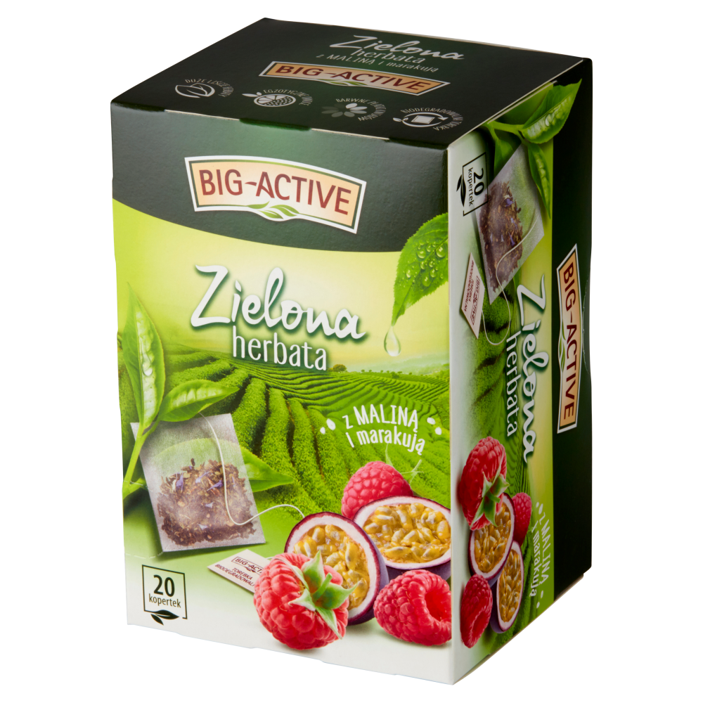 Big-Active Zielona herbata z maliną i marakują 34 g (20 x 1,7 g)