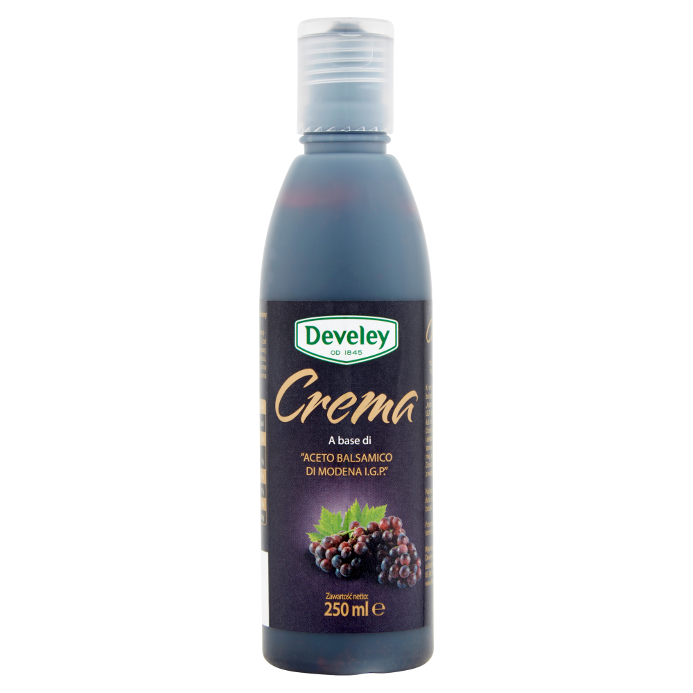 Krem na bazie octu balsamicznego z Modeny „Aceto Balsamico di Modena I.G.P". Idealny jako przyprawa lub do zdobienia potraw. Dzięki głębokiej słodyczy i delikatnej kwaskowatej nucie stanowi idealny dodatek do mięs, ryb, sałatek oraz serów. Doskonały do deserów z owocami i do lodów.