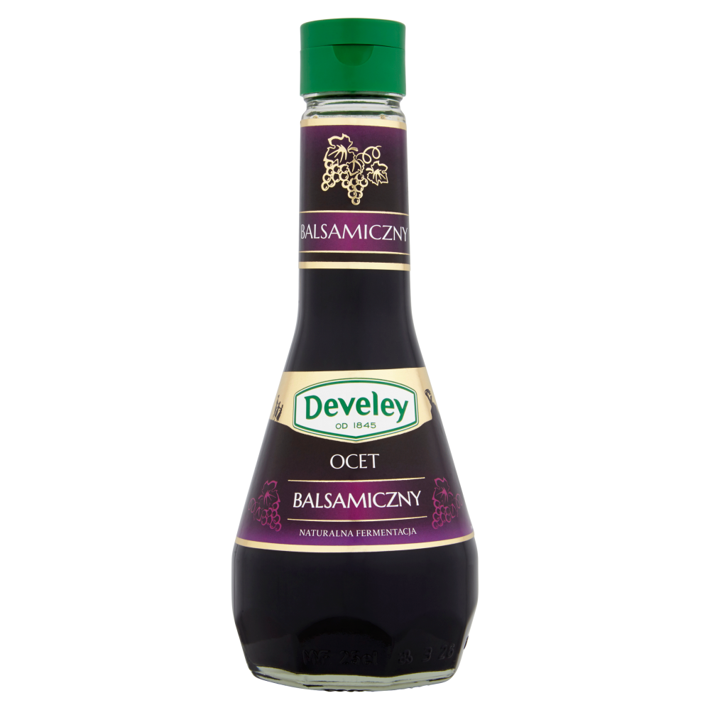 Ocet Balsamiczny Develey powstaje dzięki naturalnej fermentacji czerwonych winogron. Posiada wyjątkowo bogaty, pełen delikatności, lekko słodkawy zapach i smak.