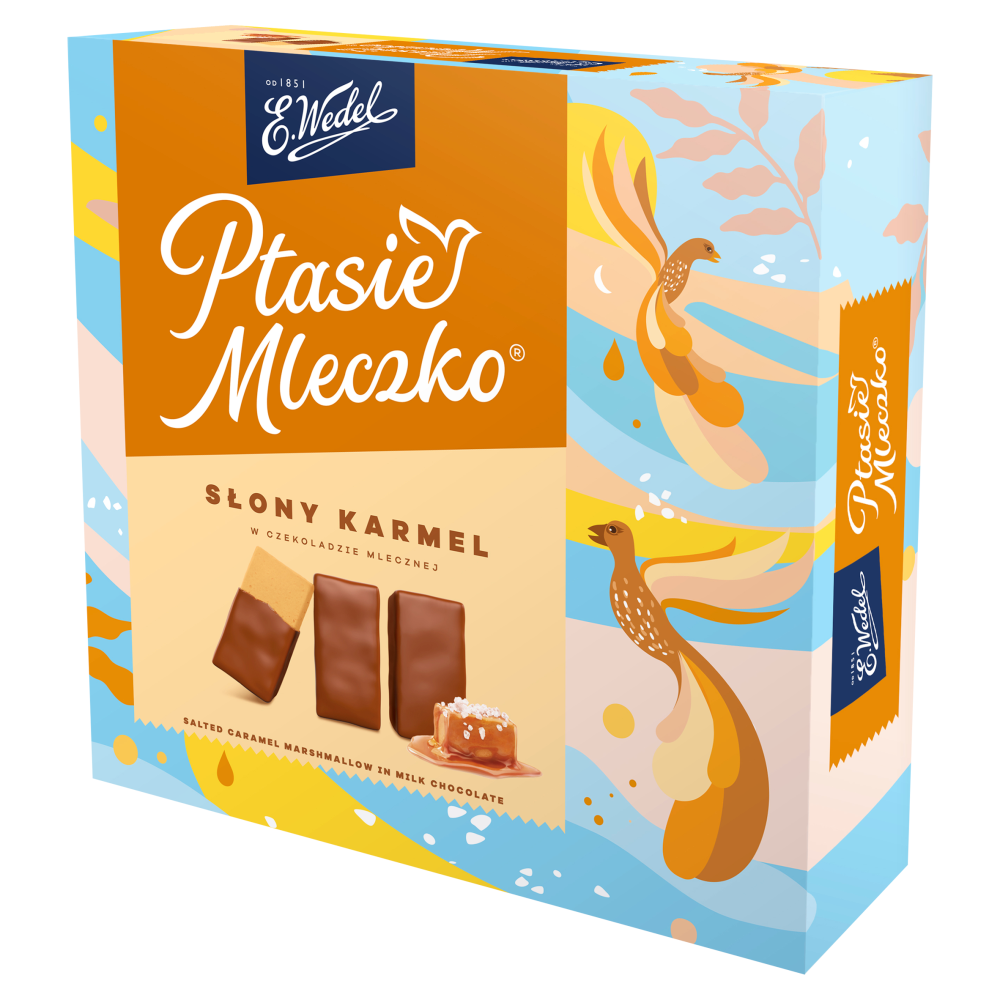 Ptasie Mleczko® Słony Karmel to propozycja, która skradła serca konsumentów. W odpowiedzi na ich oczekiwania od teraz ten pyszny wariant dostępny jest w stałej ofercie Ptasie Mleczko®, aby uprzyjemniać każdy dzień. Idealny smak solonego karmelu zamknięto w lekkiej piance, oblanej oryginalną wedlowską czekoladą mleczną. Dwa pięterka słodko-słonej przyjemności sprawią, że wszystkie chwile spędzone z bliskimi będą jeszcze lepsze.