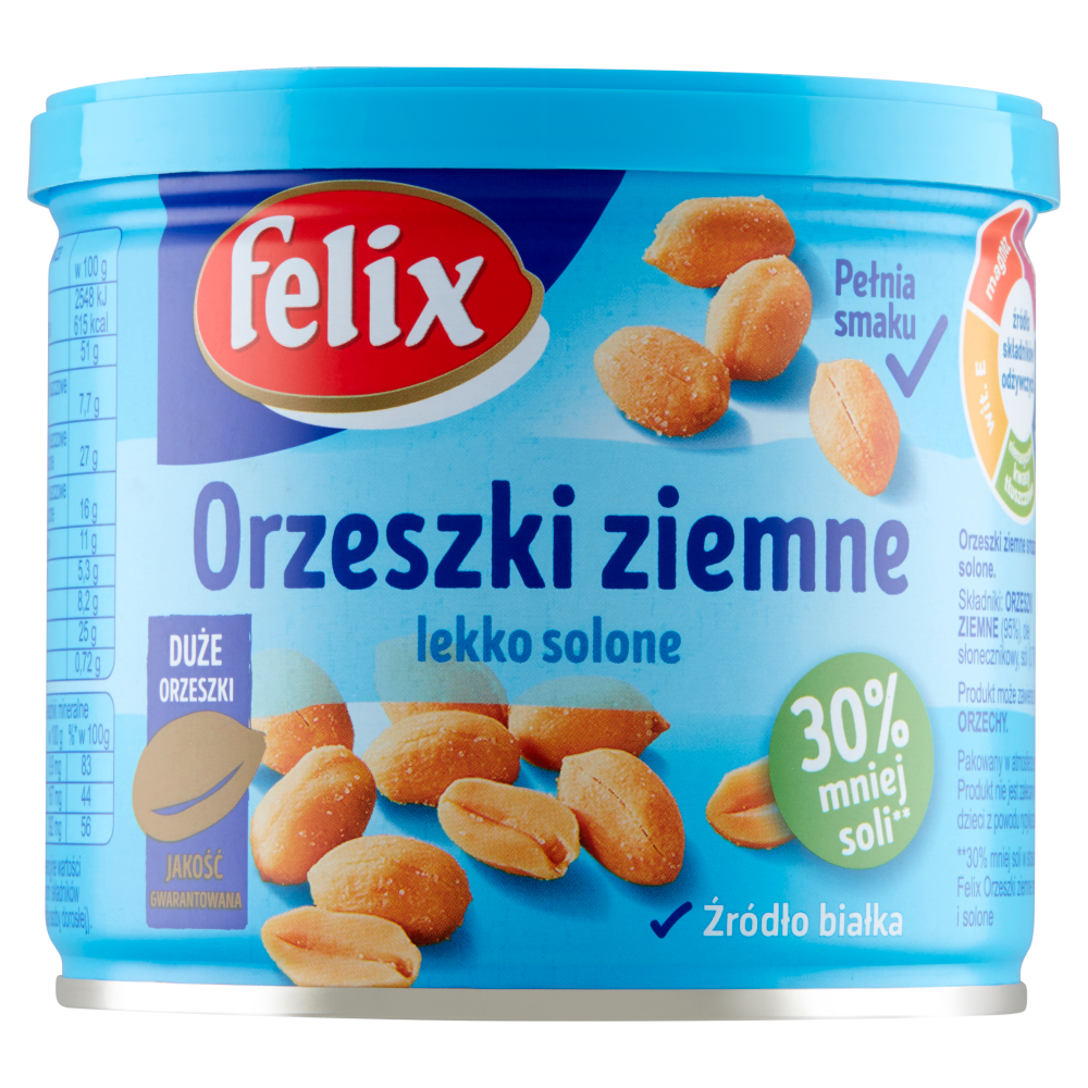 **30% mniej soli w stosunku do Felix Orzeszki ziemne smażone i solone