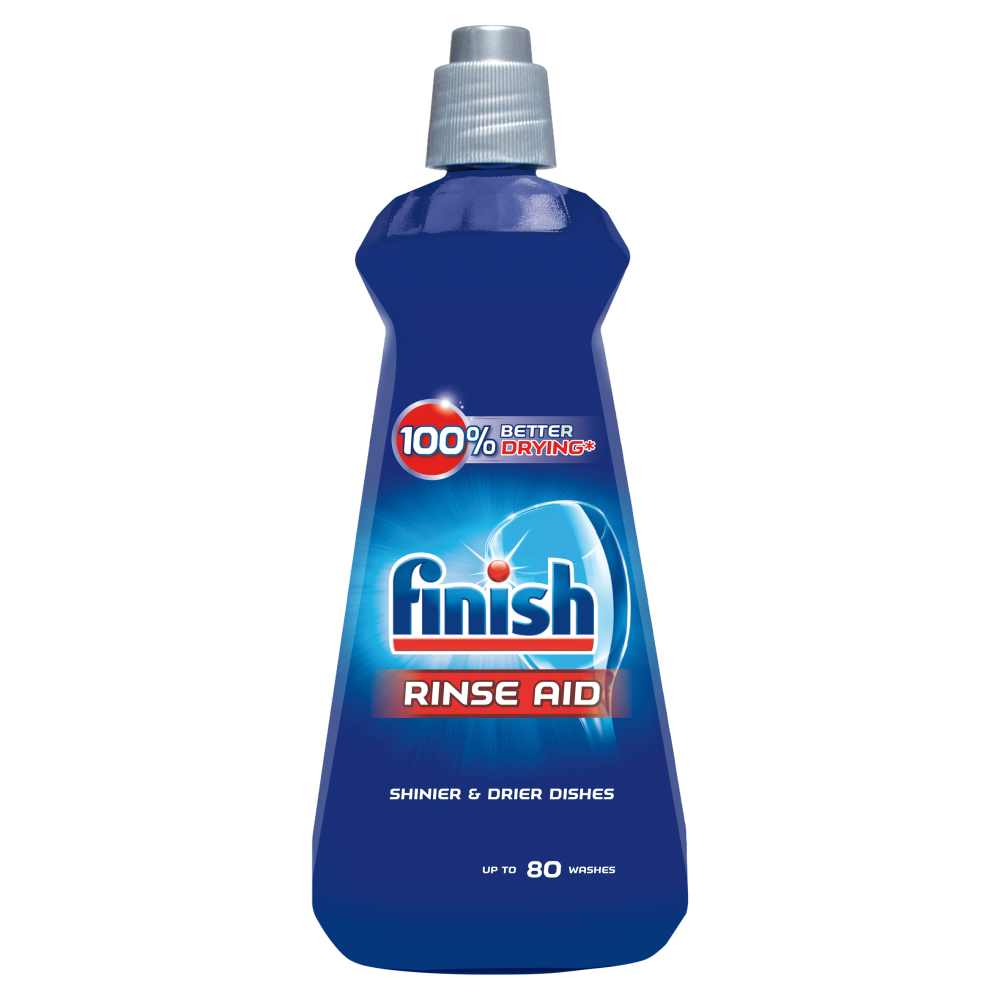 Jeśli Twoja zmywarka kończy zmywanie, a Ty wciąż wyjmujesz z niej mokre naczynia, to znak, że nie używasz płynu nabłyszczającego Finish Rinse Aid, który nie tylko eliminuje zacieki, nalot i nadaje olśniewający połysk, ale również przyspiesza schnięcie naczyń i pozostawia świeży zapach. Dzięki niemu po skończonej pracy zmywarki możesz od razu odstawić na miejsce suche i błyszczące naczynia. Dla najbardziej optymalnych efektów używaj płynu nabłyszczającego z tabletkami wielofunkcyjnymi i innymi dodatkami Finish.