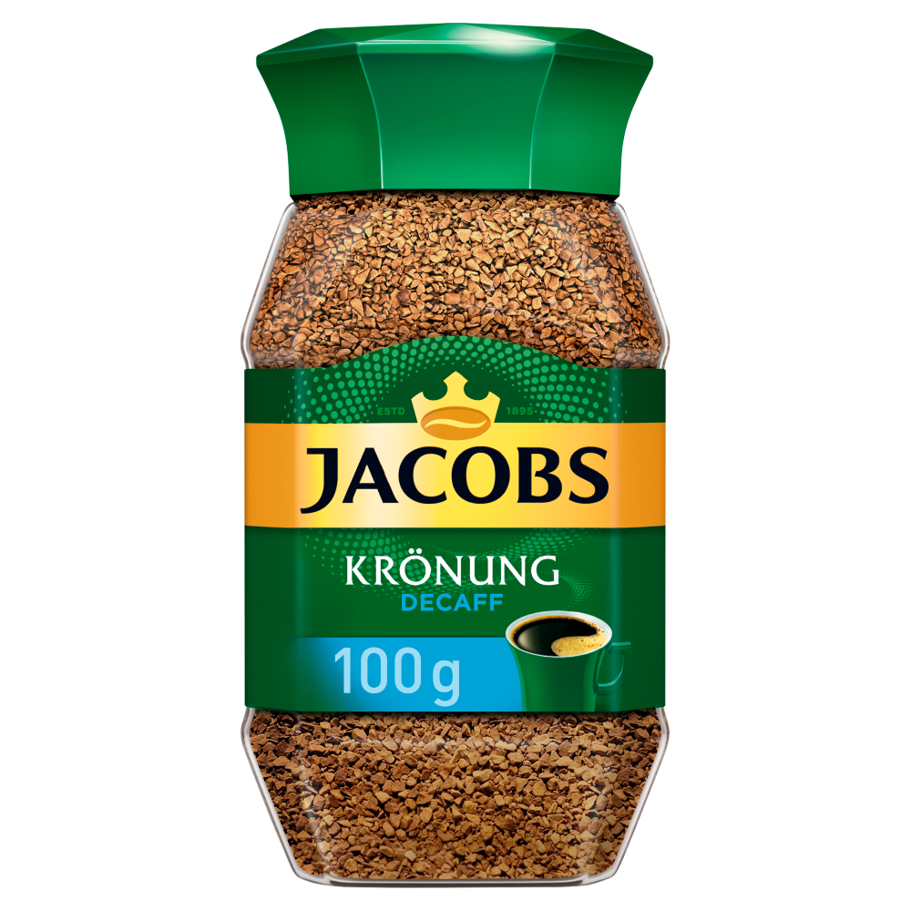 Jacobs Krönung Decaff to kawa o bogatym smaku i prawdziwie królewskim aromacie. Bez kofeiny. Kawa rozpuszczalna jest otrzymywana w 100% z ziaren kawy.