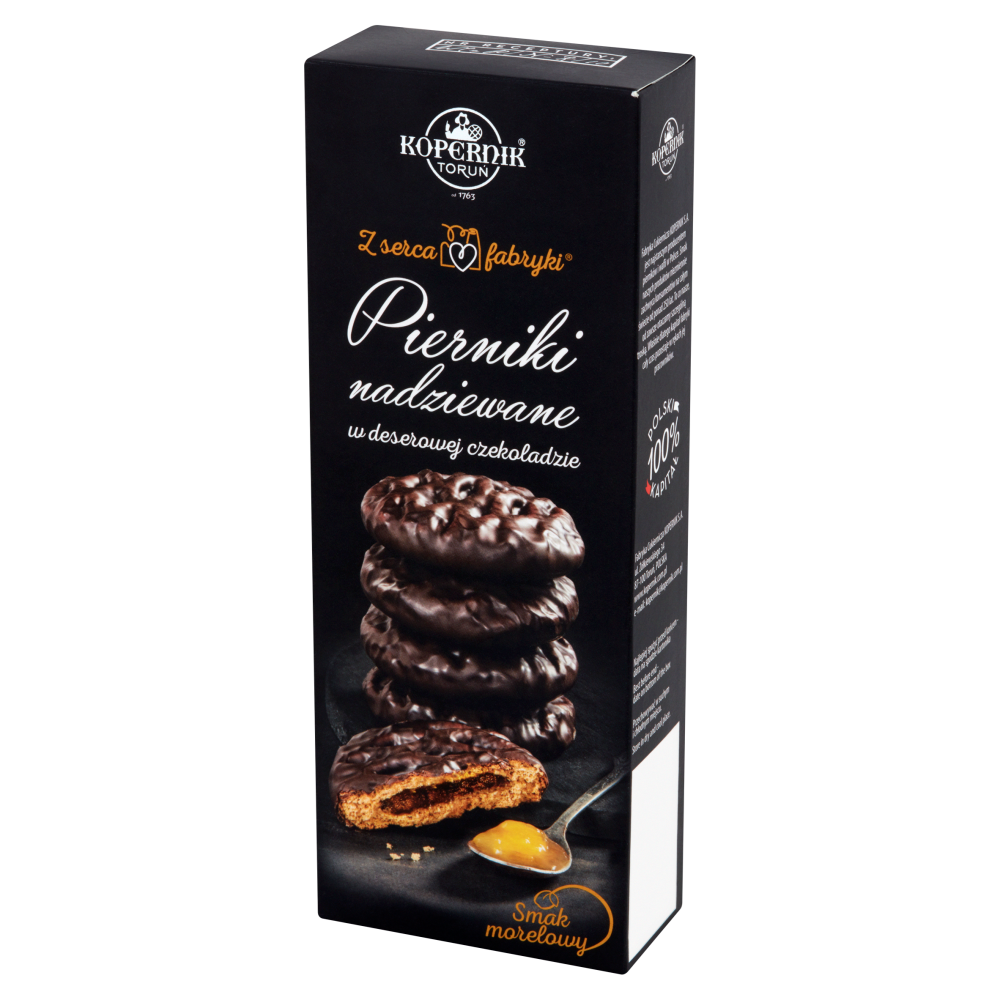 Kopernik Z serca fabryki Pierniki nadziewane w deserowej czekoladzie smak morelowy 145 g