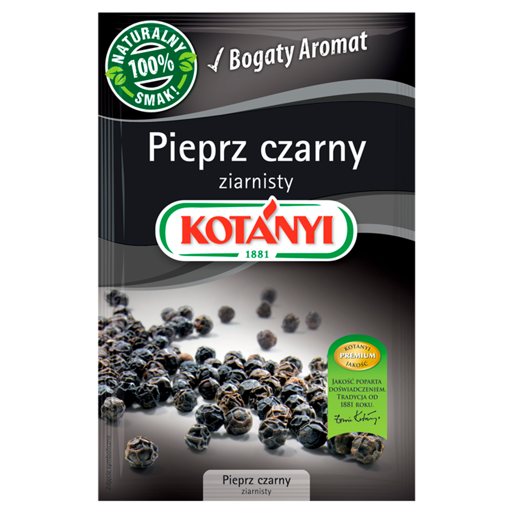 Pieprz czarny nada Państwa potrawom wyjątkową ostrość, jeśli będzie dodany odpowiednio wcześnie i gotowany razem z potrawą. Aromat pieprzu czarnego Kotányi uwalnia się w pełni, jeśli jest świeżo mielony.
