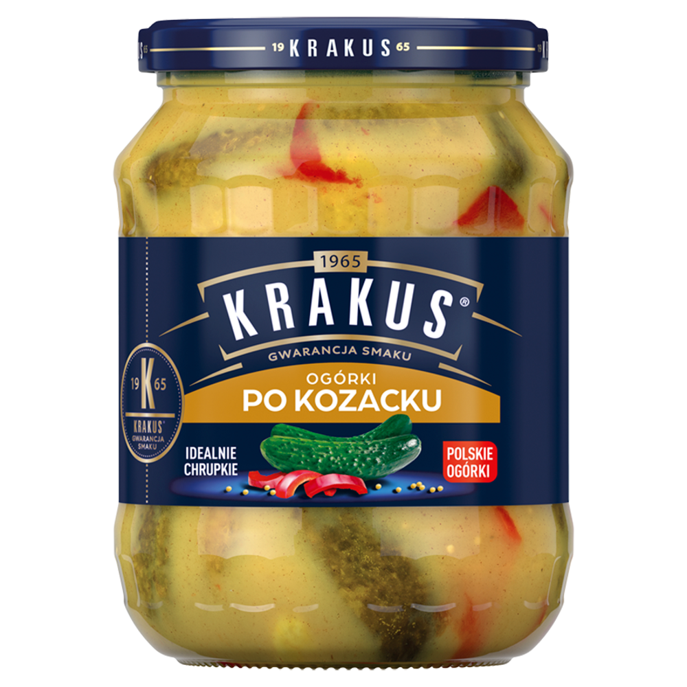 Ogórki po kozacku to ogórki w słodko-kwaśnej zalewie z dodatkiem musztardy i papryki. To dzięki musztardzie ogórki zyskują niepowtarzalnego charakteru i wyjątkowego smaku. Są idealną propozycją dla tych, którzy szukają nietuzinkowych połączeń smakowych, ich niepowtarzalny smak urozmaici codzienne dania oraz chwile spędzone z rodziną i przyjaciółmi.