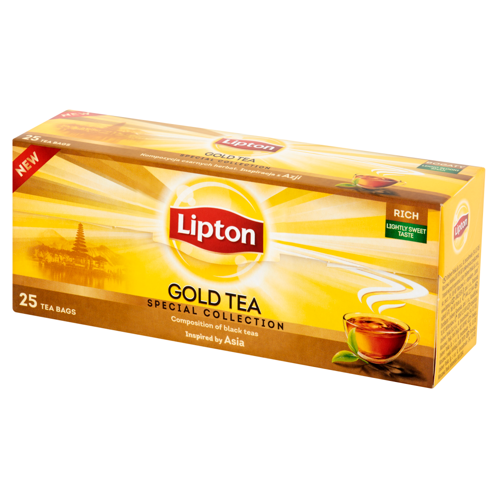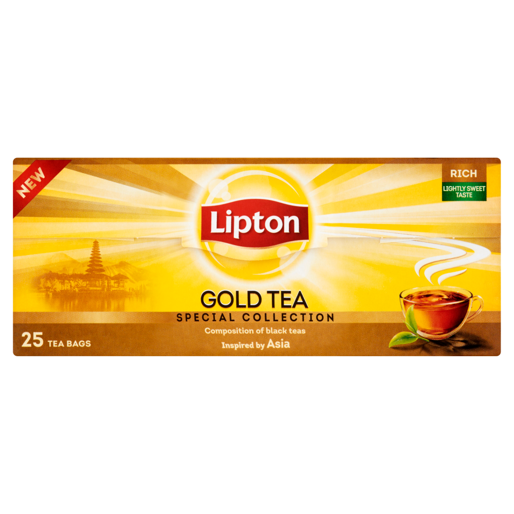 Egzotyczna Azja inspiruje pięknem barw i oryginalnymi smakami. Lipton Gold Tea to doskonała kompozycja czarnych herbat, która nawiązując do niezwykłych smaków Azji, charakteryzuje się bogatym, lekko słodkim smakiem.