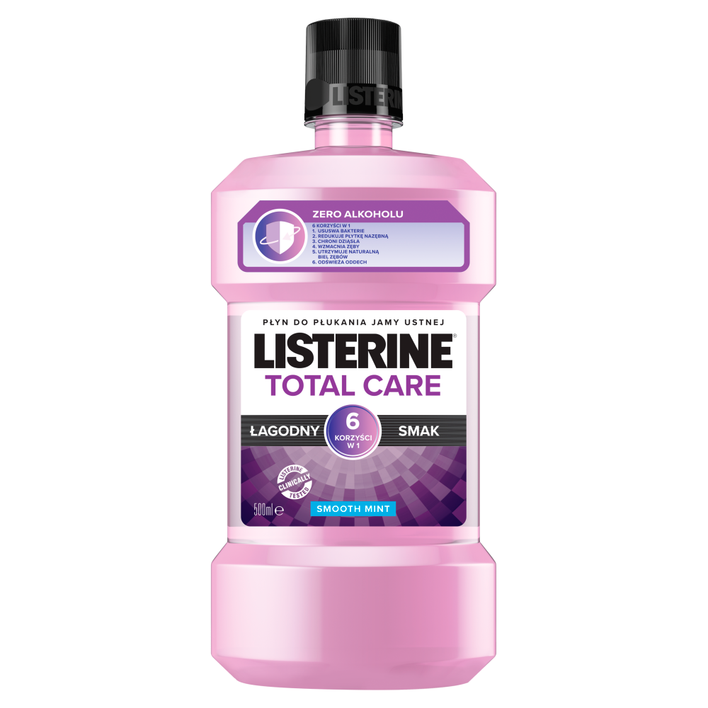 Kiedy potrzebujesz zdecydowanego, kompleksowego sposobu na dbanie o higienę jamy ustnej - obudź w sobie moc! Stosuj płyn, który pomaga zapobiegać próchnicy, wzmacnia zęby, usuwa bakterie i odświeża oddech. Żaden inny płyn Listerine, nie zapewni Ci bardziej kompletnej ochrony, jednocześnie ma łagodny smak i zero alkoholu. Wybierz Listerine Total Care łagodny smak