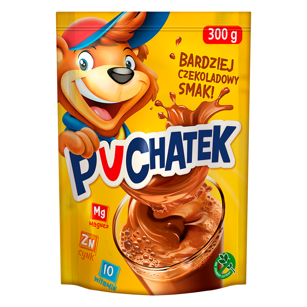 Puchatek to rozpuszczalny napój kakaowy, doskonałej jakości, stworzony z myślą o dzieciach.