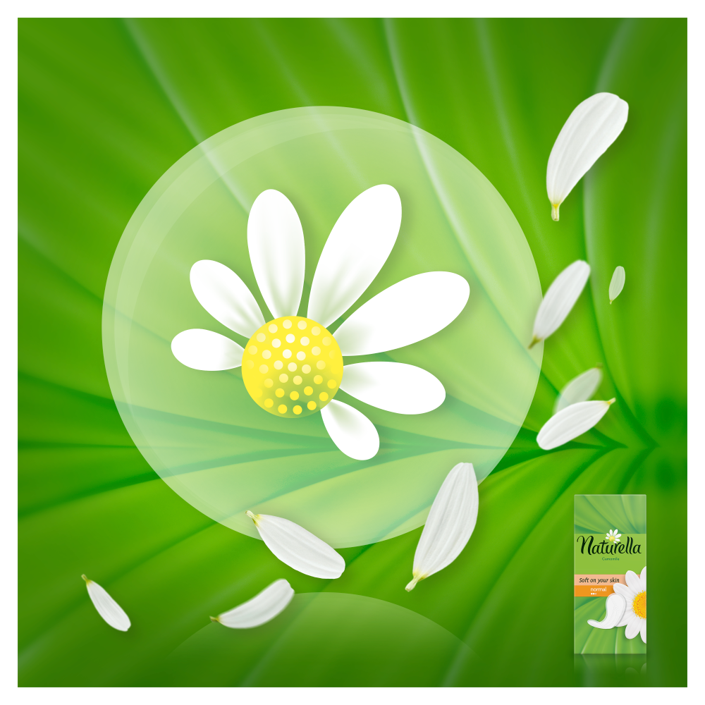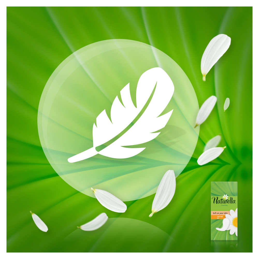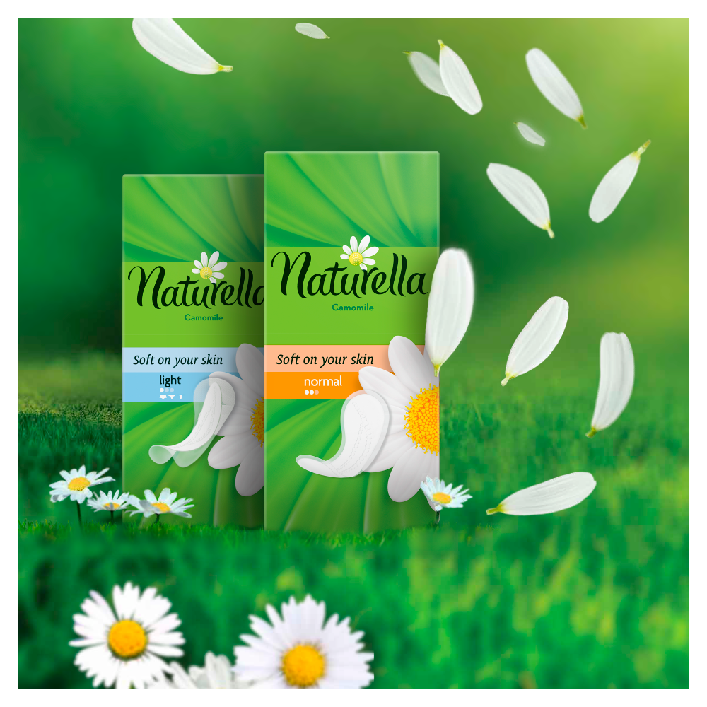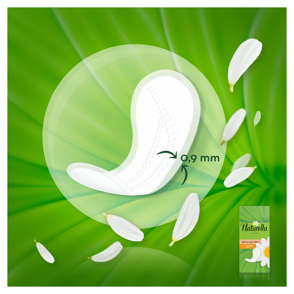 Każdy dzień to nowa szansa na świeży start. Zachowaj świeżość przez cały dzień z wkładkami higienicznymi Naturella Normal Camomile. Dzięki warstwie wierzchniej miękkiej niczym płatki kwiatów oraz łagodnemu zapachowi inspirowanemu aromatem rumianku, te oddychające, mierzące zaledwie 0,9 mm grubości wkładki higieniczne zapewnią Ci świeżość i komfort każdego dnia. Wkładki Naturella, zatwierdzone przez instytut badań dermatologicznych proDERM, pozwalają dbać o higienę intymną i zapewniają codzienną ochronę, na której kobiety mogą polegać. Wkładki higieniczne Naturella to świetne rozwiązanie chroniące bieliznę przed wydzieliną pochwową, nieregularnymi miesiączkami oraz wydzieliną pojawiającą się przed okresem. Dla lepszej ochrony podczas miesiączki koniecznie wypróbuj podpaski Naturella.