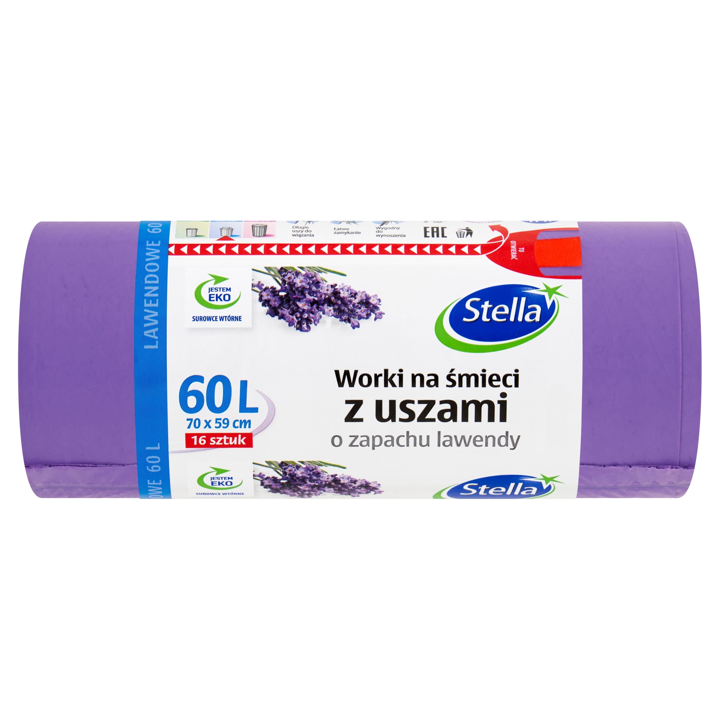 Stella Worki na śmieci z uszami o zapachu lawendy 60 l 16 sztuk