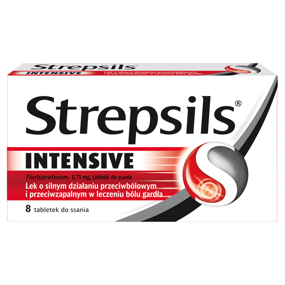 Opis działania: Strepsils Intensive zawiera flurbiprofen, substancję o silnym działaniu przeciwbólowym i przeciwzapalnym w leczeniu bólu gardła. Działa w miejscu powstawania ostrego bólu gardła.