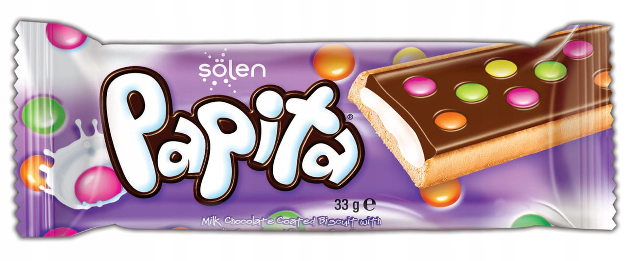 Ciastko z Mlecznym nadzieniem w polewie czekoladowej z drażami.