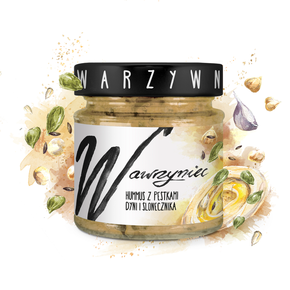 Pasta warzywna hummus z pestkami dyni i słonecznika. Produkt sterylizowany.