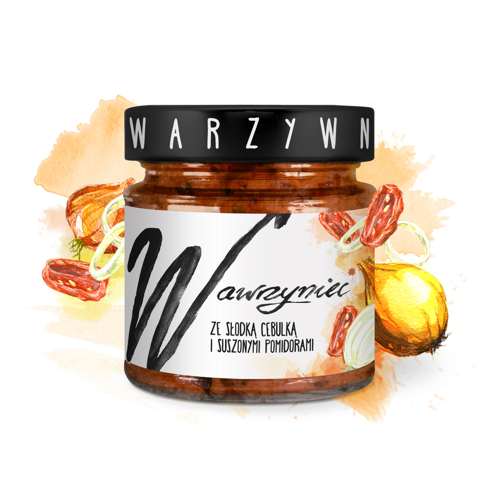 Pasta warzywna ze słodką cebulką i suszonymi pomidorami. Produkt sterylizowany.