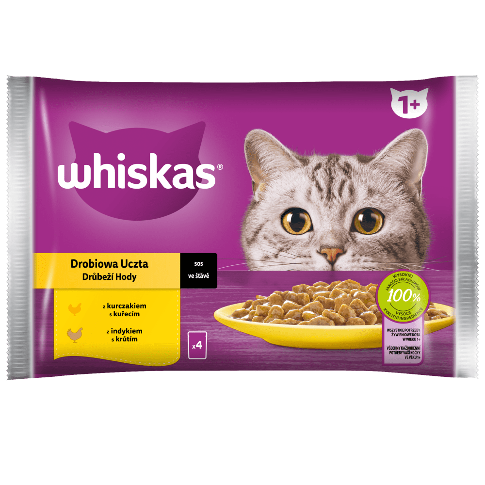 Whiskas 1+ Drobiowa uczta kurczak/indyk w sosie 4x85g
