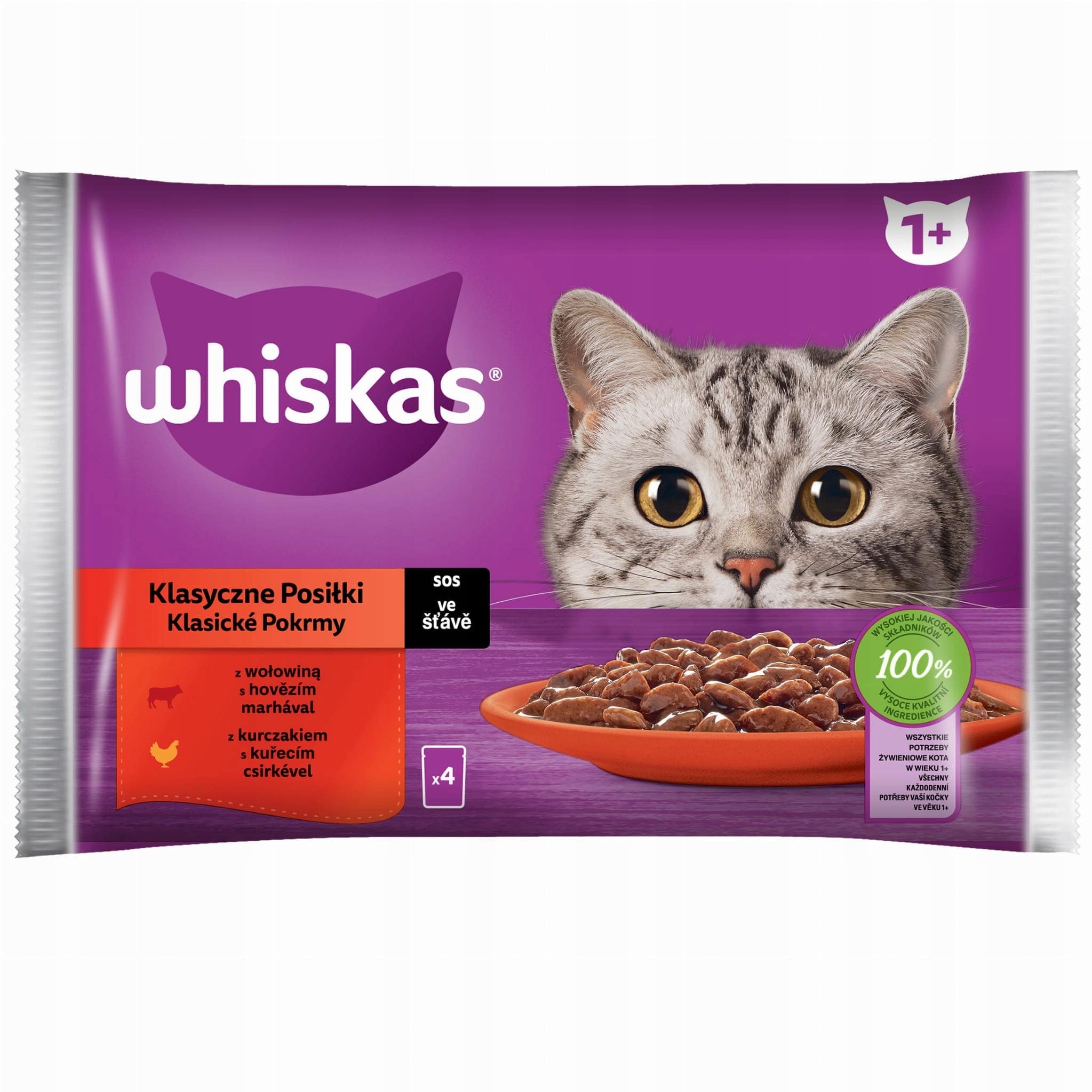 Whiskas 1+ Klasyczne posiłki wołowina/kurczak w sosie 4x85g