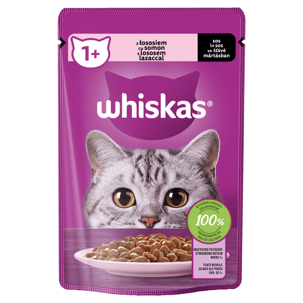 Whiskas 1+ lat Karma pełnoporcjowa z łososiem w sosie 85 g