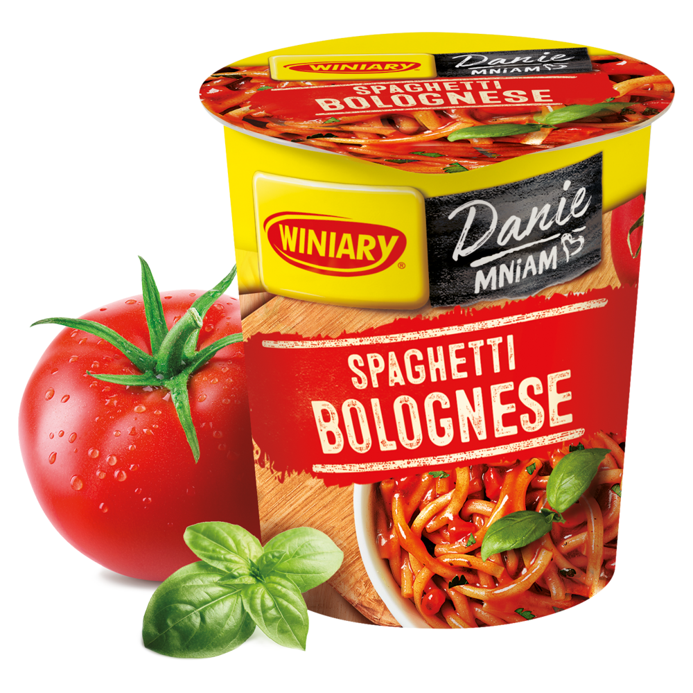 Winiary Danie instant Speghetti bolognese to pyszne połączenie delikatnego makaronu z sosem z suszonych pomidorów, z dodatkiem podsmażanej cebulki, czosnku i aromatycznych ziół - prawdziwie włoski klimat! Zalej gorącą wodą, zamieszaj, poczekaj 5 minut i gotowe! Spróbuj także innych dań instant od Winiary, dostępnych aż w 10 wariantach smakowych.